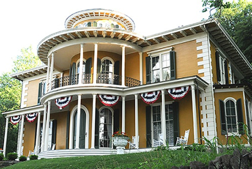 Aurora is full of unique and historic buildings that preserve its older rivercity characteristics. It is also known for its picturesque historic downtown area and the ornate Hillforest mansion built for Thomas Gaff who earned his fortune shipping goods on the Ohio River by steamboat. The mansion was designed by architect Isaiah Rogers and was completed in 1855 in the Italian Renaissance style.